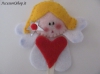 Un dolcissimo angelo per decorare e personalizzare i tuoi doni di Natale o da appendere semplicemente all'albero. Realizzato a mano con pannolenci, cotone e nastri.